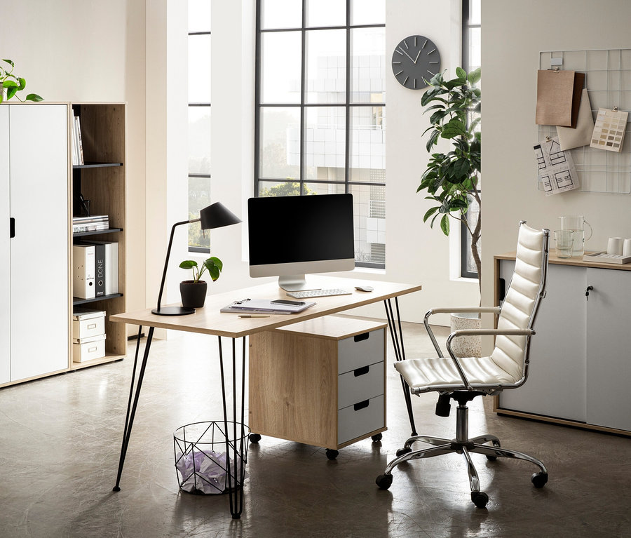 Rollcontainer »Emmik«, matt weiß/eichenfarben