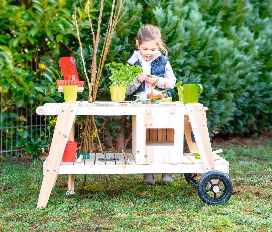 - Inkl. Matschschüssel, 2 Matschtöpfen, 2 Pflanztöpfen und Aufbauanleitung