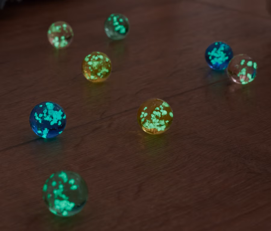 • Set aus 8 Glasmurmeln in 4 verschiedenen Farben