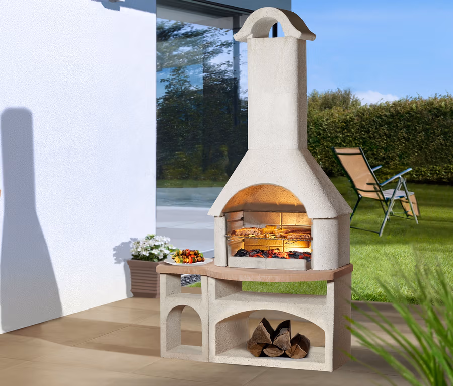 Grillkamin terracotta und naturweiß