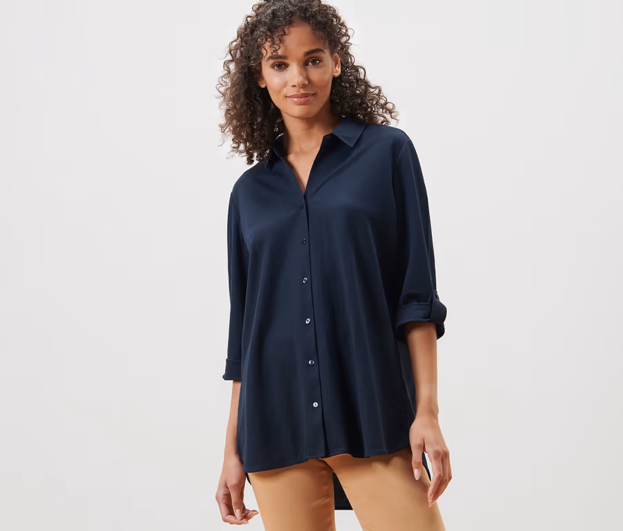 - Diese Bluse beinhaltet Fasern aus nachhaltigem Holz.