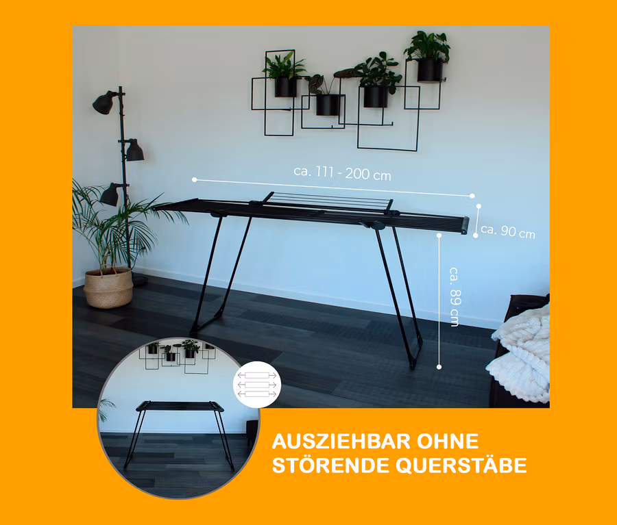 - Zusammengeklappt platzsparend hinter einem Schrank oder im Hauswirtschaftsraum verstaubar