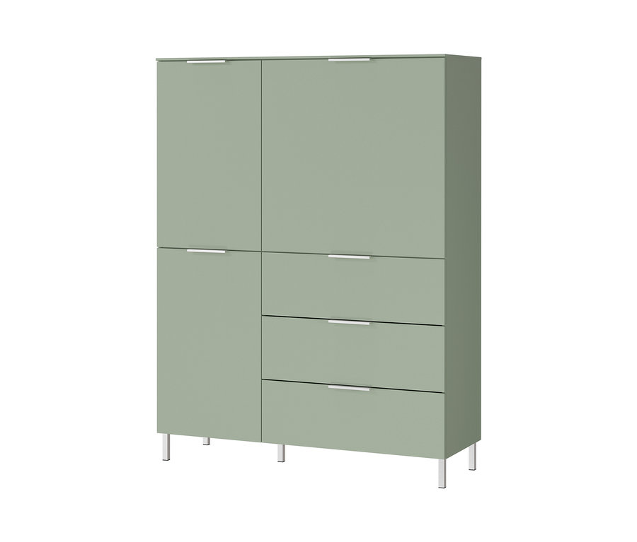 • Inkl. 2 Fußvarianten: hohe Metallfüße oder Möbelgleiter aus Kunststoff