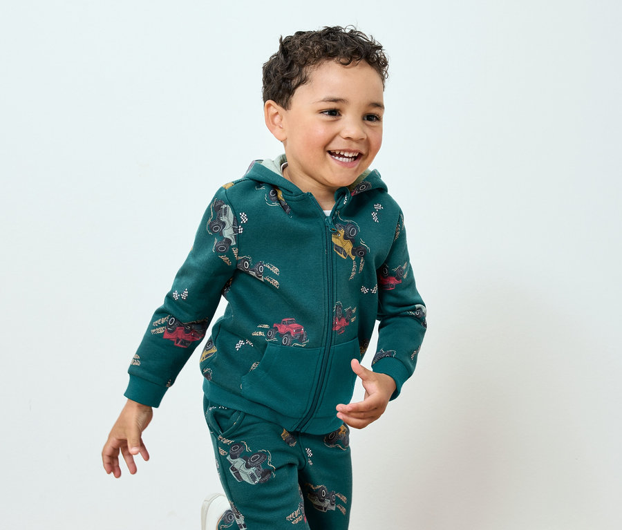 Dunkelgrün mit mehrfarbigem Truck-Alloverprint
