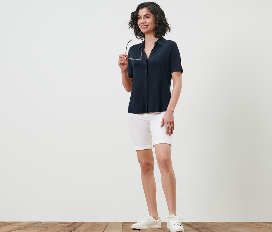 • Dieses Blusenshirt beinhaltet Fasern aus nachhaltigem Holz.