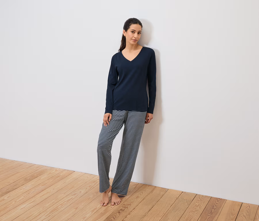 Pyjama, dunkelblau-dunkelblau gestreift