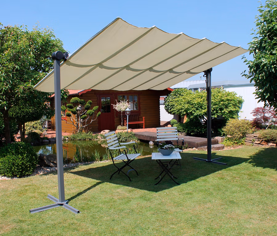 - Funktionales und stilvolles Sonnendach – lässt sich in jede Gartenwelt integrieren