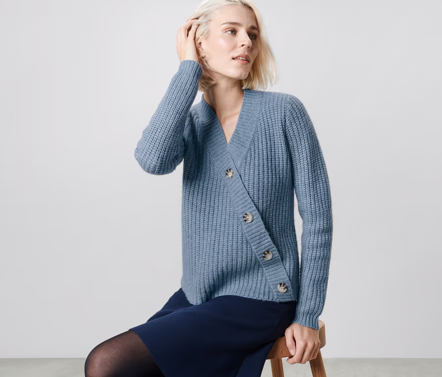 - Rippbündchen an Ausschnitt und Ärmelabschluss