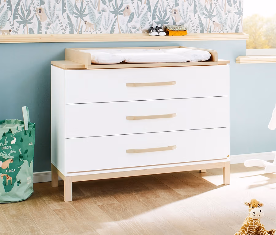 - 3 Schubladen mit viel Platz für Wickelutensilien und Kleidung