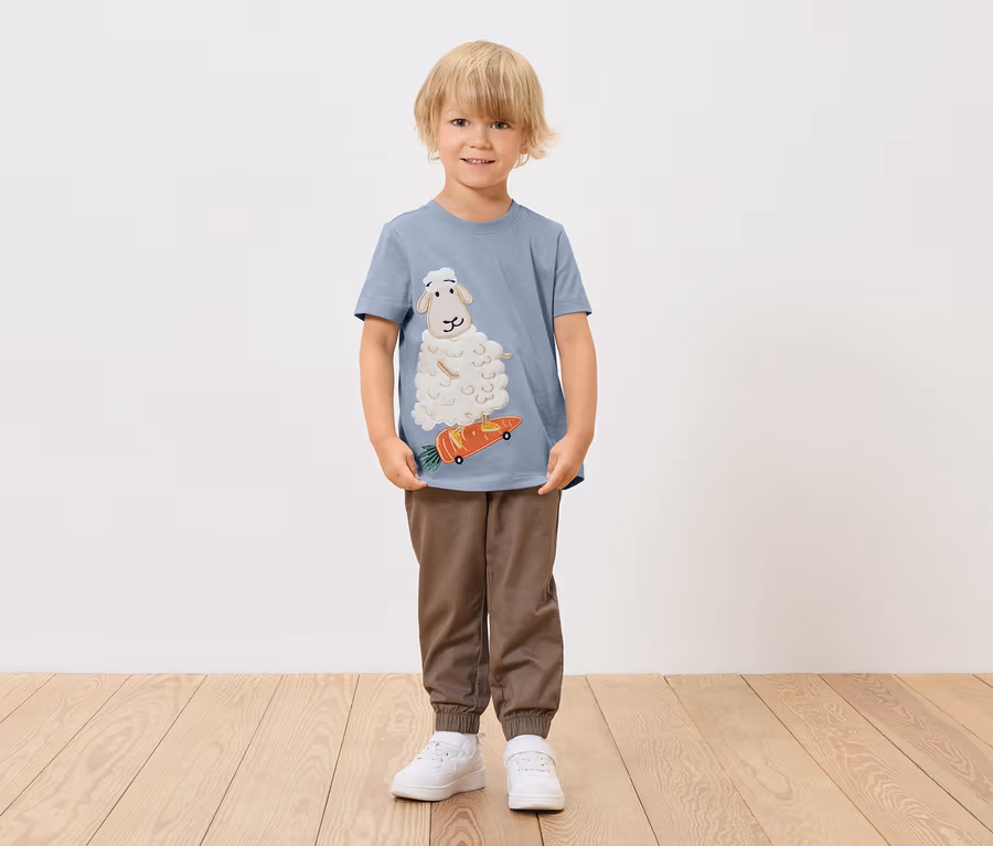 - 2 verschiedene Dessins, 1x mit Plüsch-Applikation und Stickerei, 1x mit aufgesetzter Brusttasche und Print