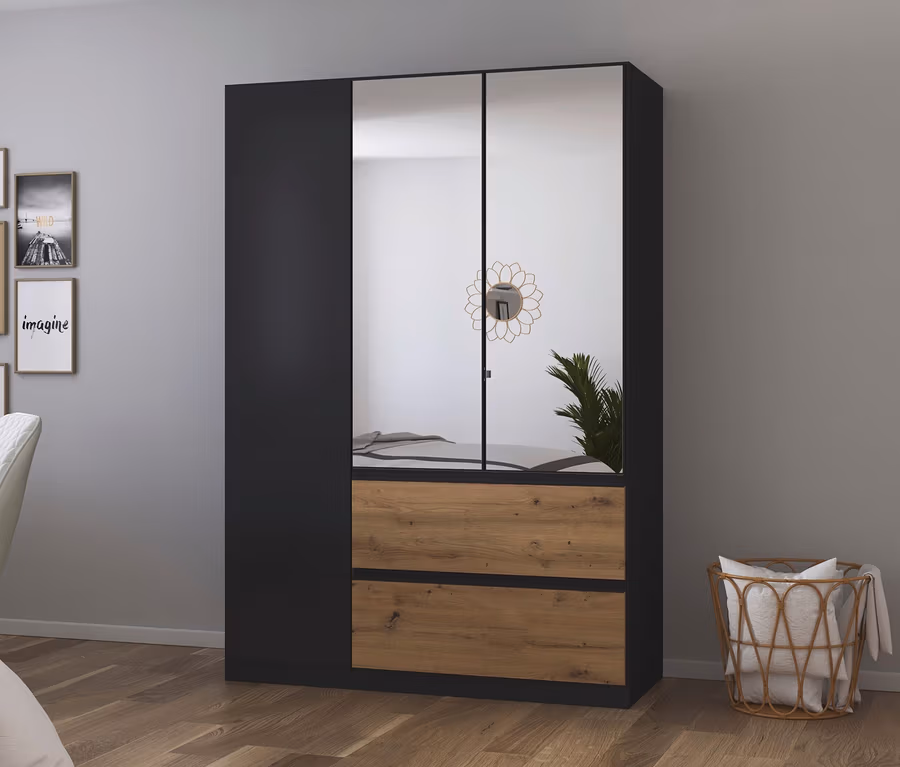 rauch Kleiderschrank »Joel«, 3-türig mit Spiegel, grau metallic/Eiche Artisan