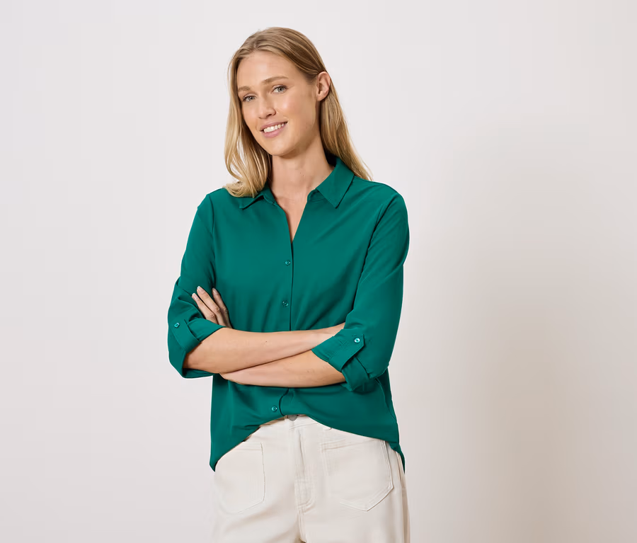 - Abgerundeter Saum mit leicht verlängerter Rückenpartie