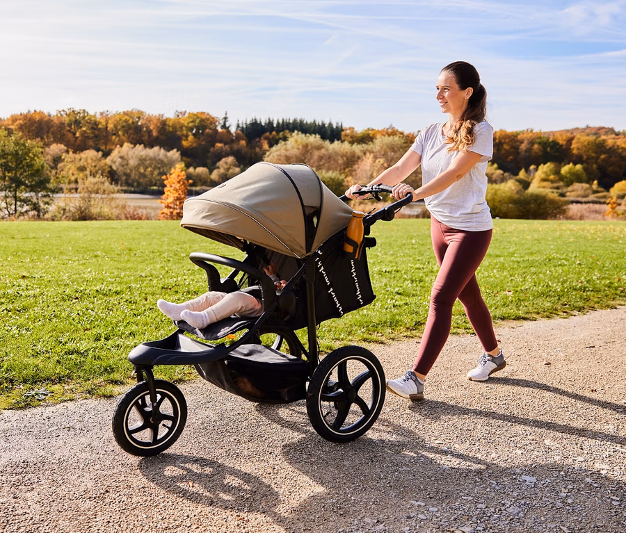 - Extra Komfort für Eltern und Kind dank 2-fach verstellbarer Hinterradfederung sowie schwenk- und feststellbarem Vorderrad