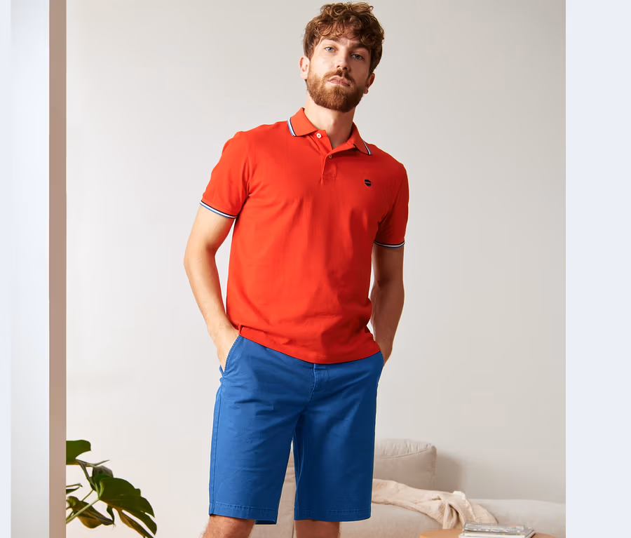 - Sommerliche Baumwoll-Stretch-Qualität mit angenehm glattem Griff