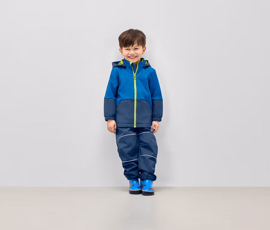 Kinder-Softshelljacke mit Farbwechsel bei Regen