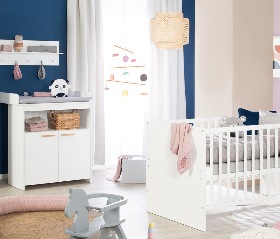 - Bestehend aus Kombi-Kinderbett und einer Wickelkommode mit abnehmbarem Wickelansatz