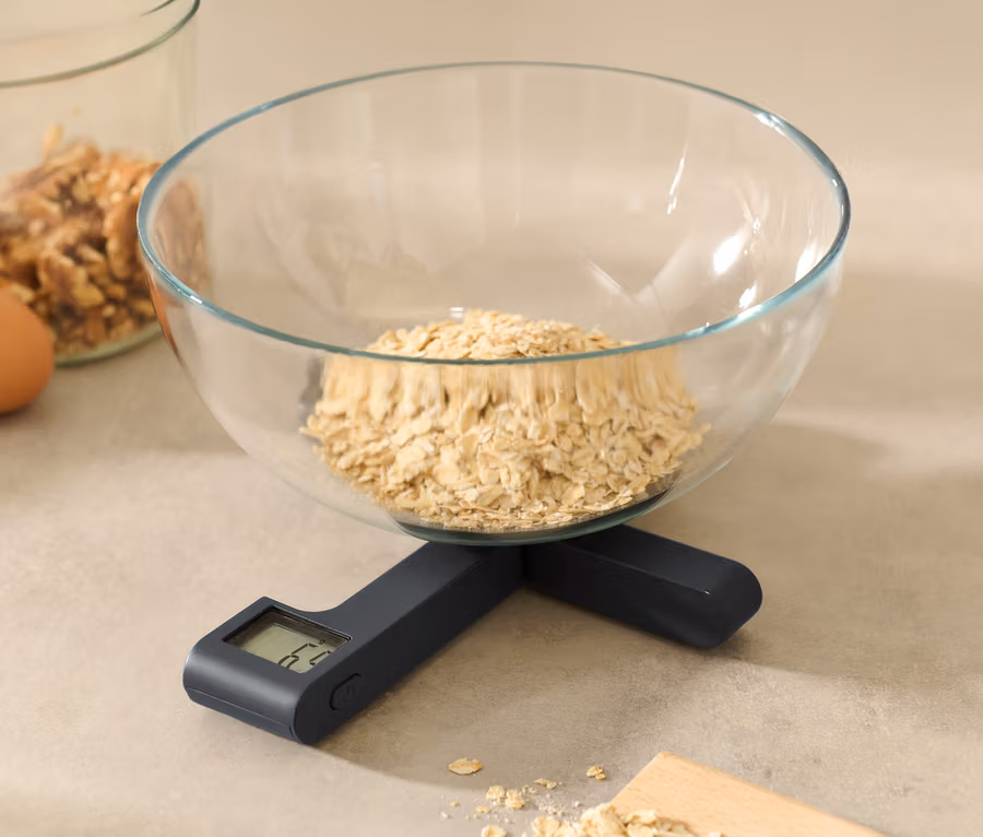 - Tara-Funktion ermöglicht Zusatz- und Wägefunktionen, sodass mehrere Zutaten während des Rezeptvorgangs in derselben Schüssel gemessen werden können