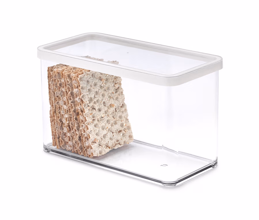 Damit Knäckebrot länger knackig bleibt als in seiner eigenen Verpackung, kann man es direkt in diese passende Frischebox umfüllen. Hinein passt eine Packung handelsüblicher Sorten und durch den transparenten, BPA-freien Kunststoff hat man immer im Blick, wann es wieder Zeit für Nachschub ist. Der dichtschließende Deckel hält den Inhalt länger frisch und bewahrt das Aroma. Die Box lässt sich natürlich auch zum Aufbewahren anderer trockener Lebensmittel wie Reis, Haferflocken oder Hülsenfrüchte nutzen.