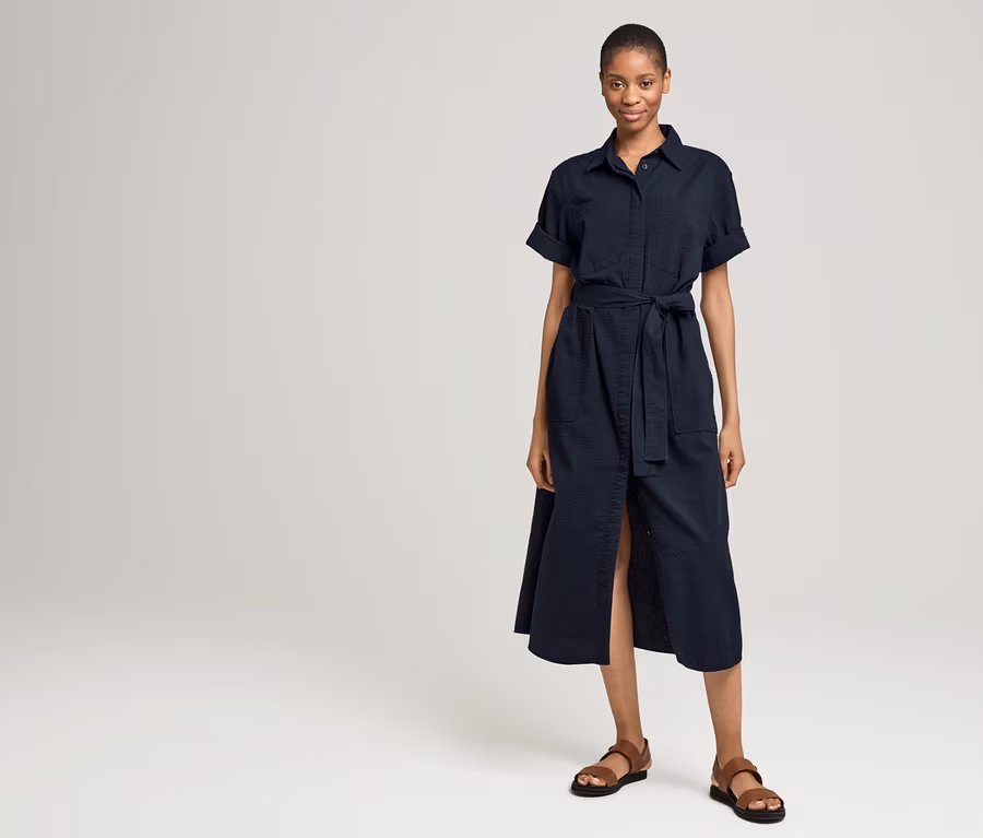 - Ob über Chinos lässig aufgeknöpft oder elegant auf Taille gebracht – unser Crinkle-Kleid ist ein Allday-Liebling. In hochwertiger Seersucker-Qualität aus ökologisch angebauter Baumwolle, die im clean designten Hemdblusen-Stil weich fällt und sich mit aufgesetzten Taschen und einem abnehmbaren Bindegürtel unkompliziert stylen lässt.