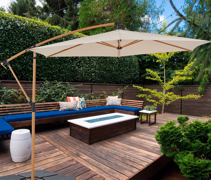 - Runder, um 360° schwenkbarer Ampelschirm für einen optimalen Schattenwurf zu jeder Zeit