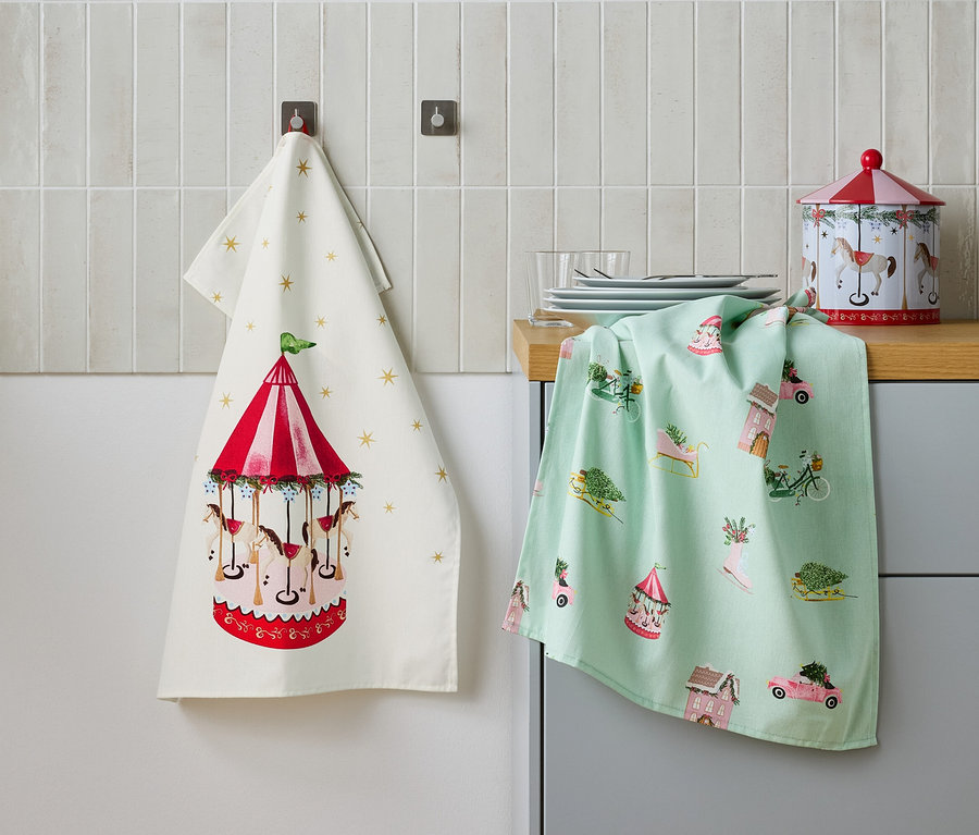 - 1x grün mit weihnachtlichen Motiven, 1x weiß mit weihnachtlichem Motiv und Sternen