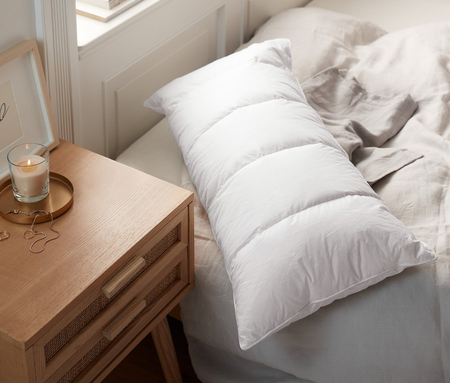 • Mit abnehmbarem, waschbarem Daunen-Bezug gefüllt mit weißen Daunen und Federn, nach DIN EN 12934
