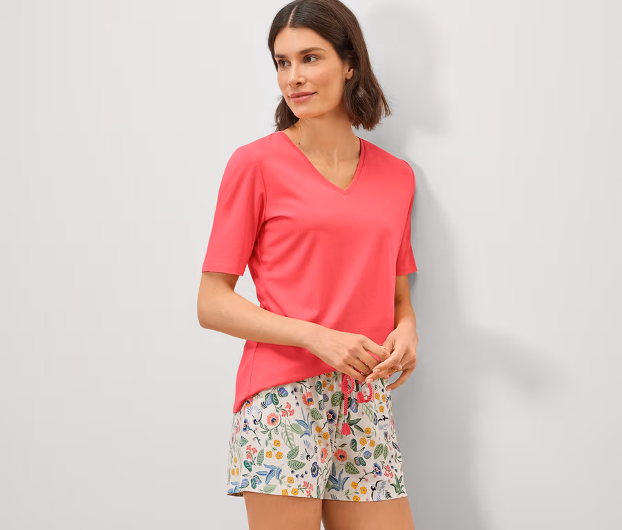 • Kurzer Damen-Schlafanzug in weichem Baumwoll-Viskose-Mix