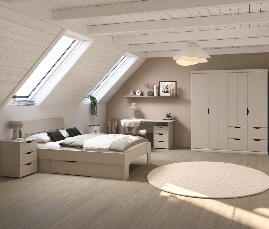 - Komplett-Schlafzimmer »Frieda« inkl. Bett (Liegefläche 140 x 200 cm) mit Unterbau, Kleiderschrank, Nachttisch und Schreibtsich in sanftem Beige (Champagner) für einen zeitlosen Look