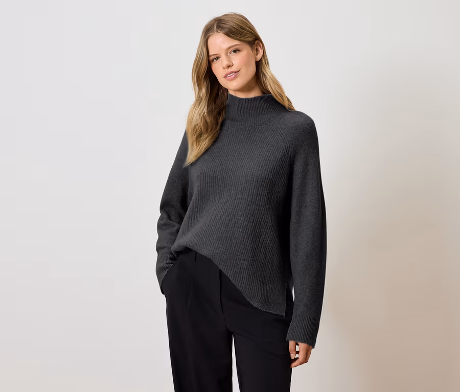 Soufflé-Yarn-Grobstrickpullover, grau