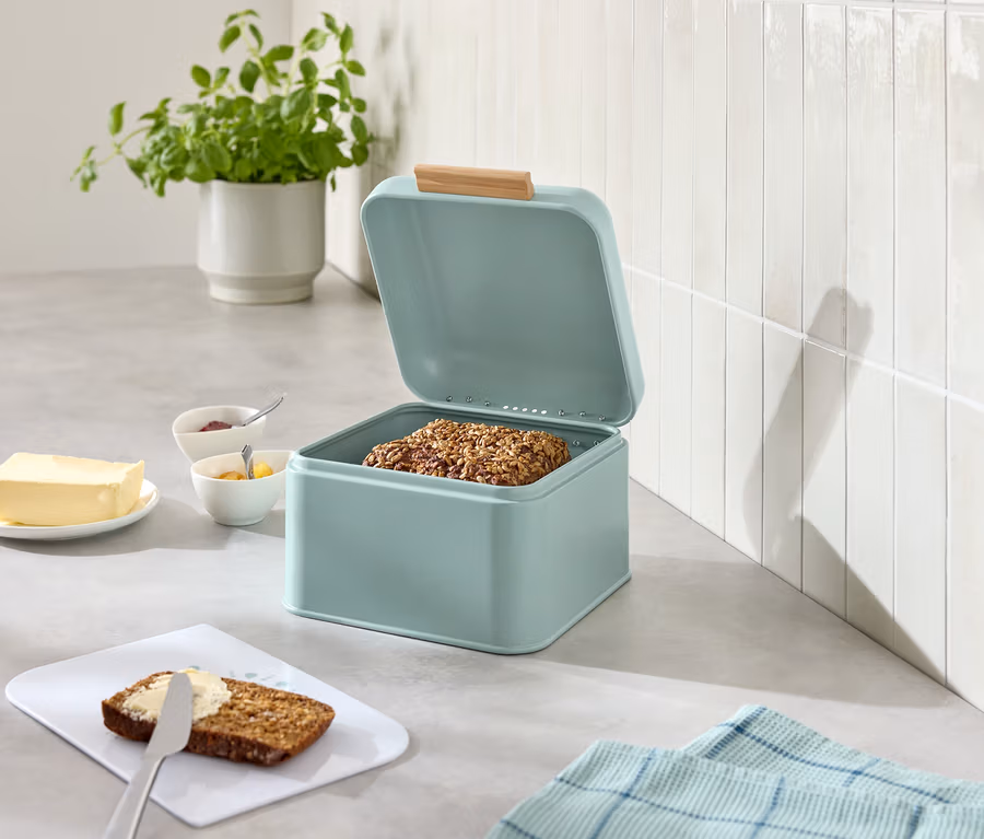 - Dekorativer Brotkasten aus salbeigrünem Metall