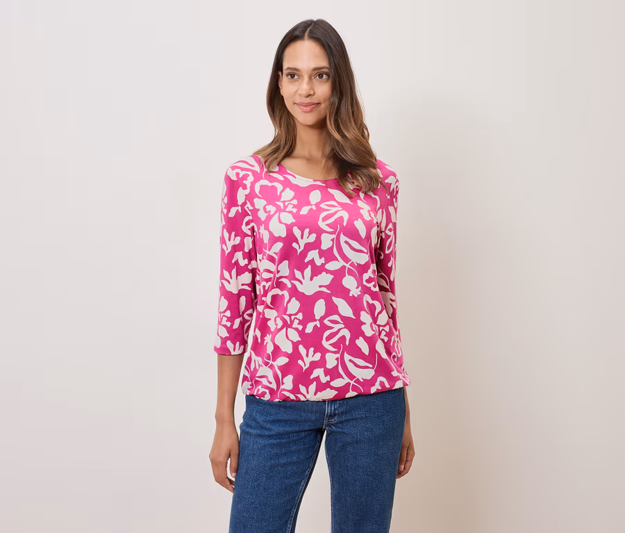 Bedrucktes Blusenshirt, pink-weißer Alloverprint