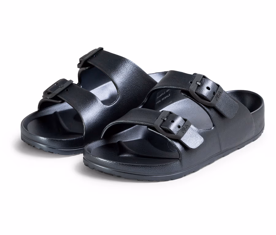 - FILA-Logo in die Schnallen geprägt