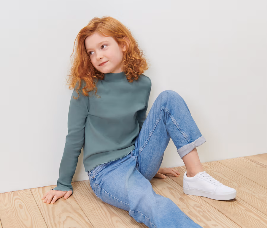 Kinder-Langarm-Rippshirt, salbeigrün