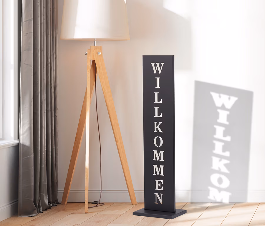 - Gelaserter Willkommen-Schriftzug