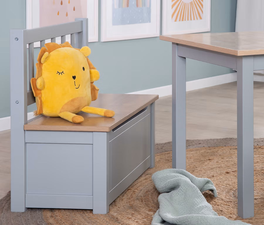 - Aufklappbarer Truhensitz bietet Stauraum für allerei Spielzeug