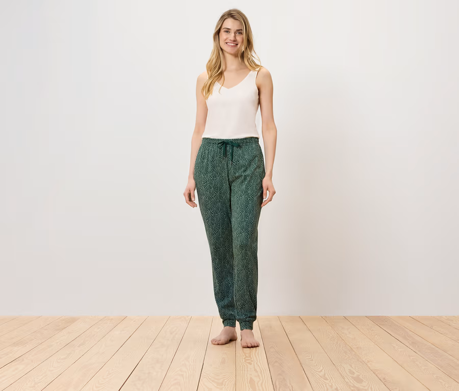 Pyjamahose, grün mit Alloverprint