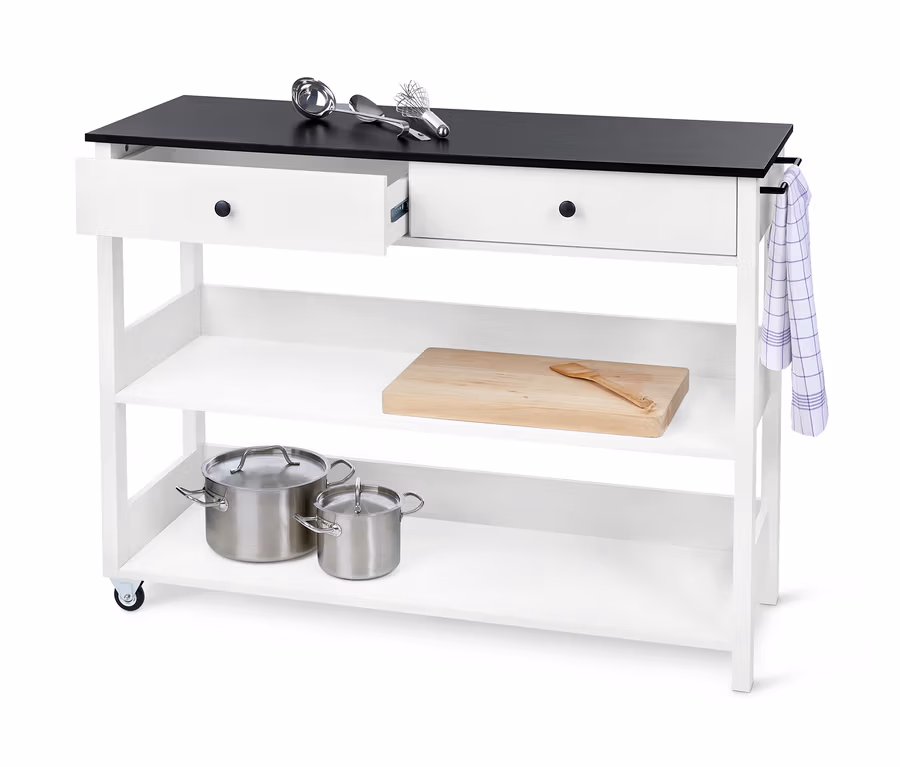 • Mobiler Servier- und Arbeitsplatz im urbanen Cottage-Design mit viel Stauraum