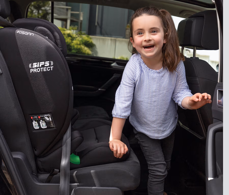 - Einfacher Umbau zur Nutzung in der Größenklasse 100–150 cm: 5-Punkt-Gurt wird einfach ohne Ausbau im Kinderautositz verstaut