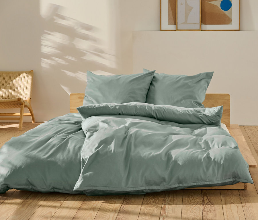 Baumwollsatin-Bettwäsche, grün, Normalgröße