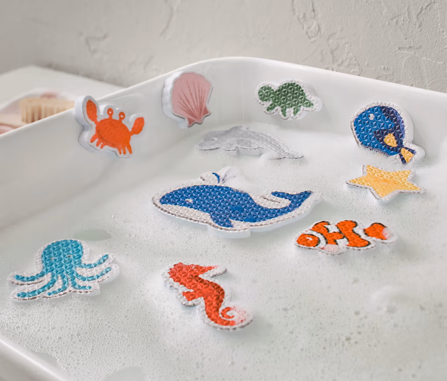 • Haften angefeuchtet auf allen glatten Oberflächen, wie z.B. Badewanne und Fliesen