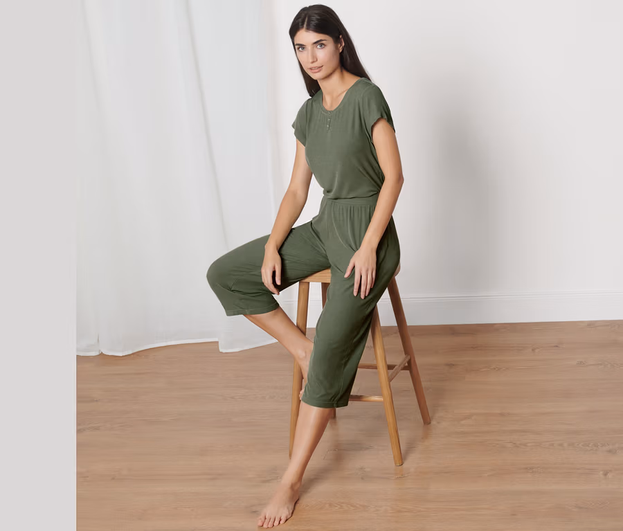 • Dieser Pyjama beinhaltet Fasern aus nachhaltigem Holz.