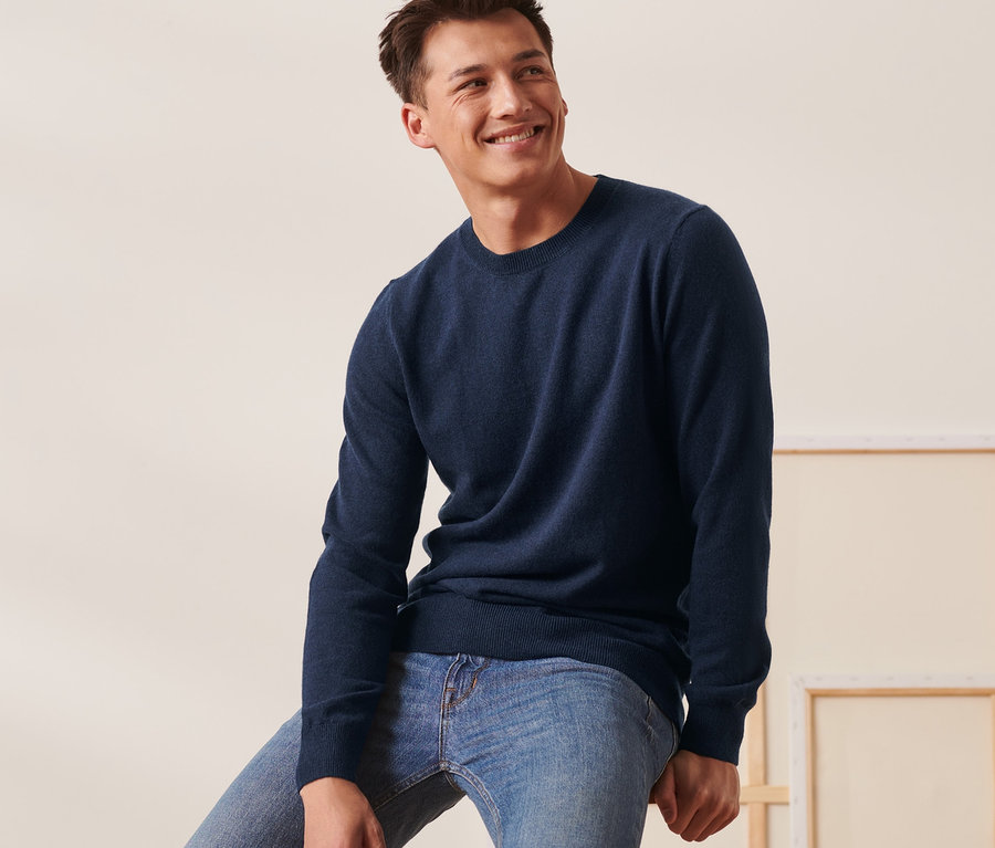 Cashmere-Pullover mit Rundhalsausschnitt, navyblau