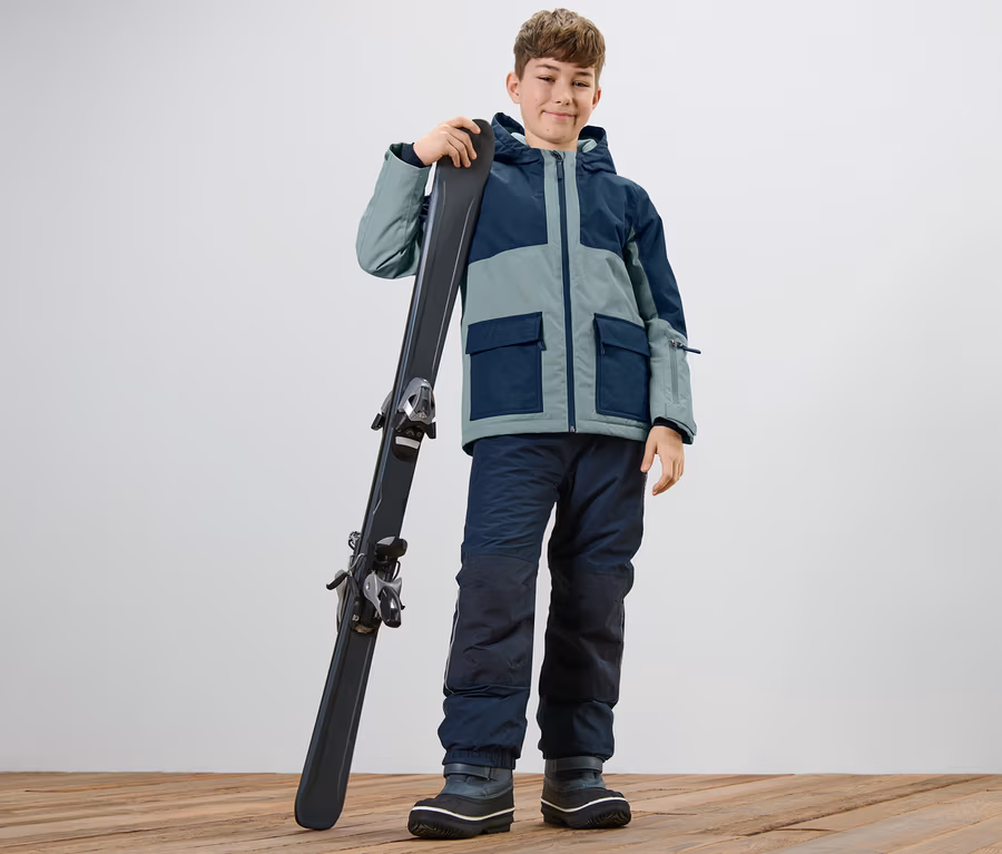 - Abnehmbarer, wasserdichter Schneefang mit rutschhemmender Gummierung und Druckknöpfen