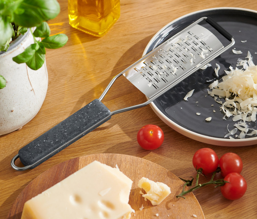 - Grobe Reibefläche – ideal für Obst, Zitrusfrüchte, Gemüse, Hartkäse und Schokolade