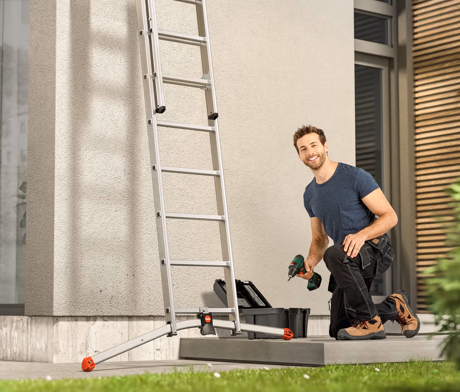 - Die Aluminium-Kombileiter vereint die Vorteile verschiedener Leiter-Modelle