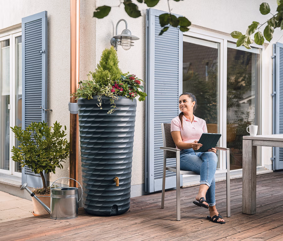 • Dekorativer Pflanzkübel und Regenwasserspeicher