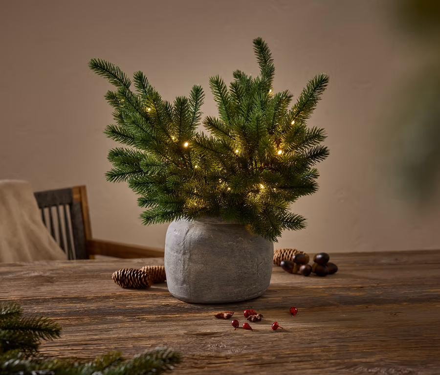 - Hochwertige Tannenoptik, je Zweig 15 LEDs – Lchtfarbe warmweiß