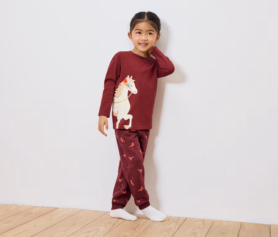 - Weinrot mit hellrotem Pferde-Alloverprint