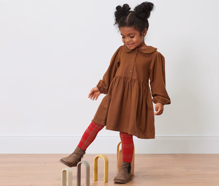 Kleinkind Webkleid, cognac