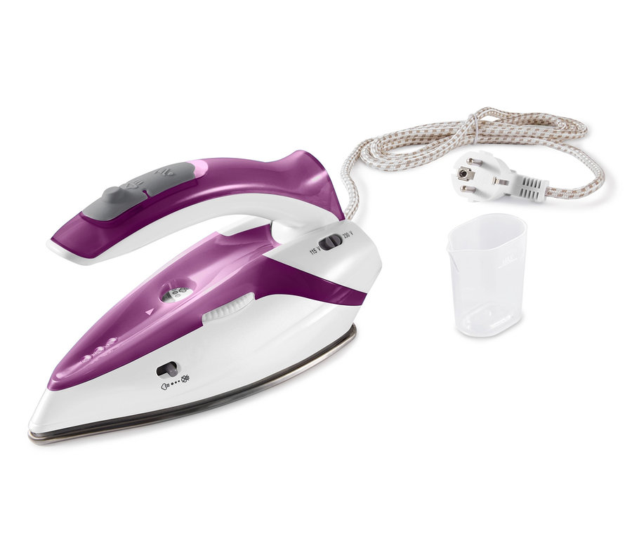 Das kleine, handliche Bügeleisen mit absenkbarem Griff kommt mit einer Dampf- sowie einer Trockenbügelfunktion daher, ist ideal für unterwegs und kann immer von 110–120 Volt auf 220–240 Volt umgestellt werden. Die Temperatur der Edelstahl-Bügelsohle ist stufenlos regulierbar, die Standfunktion ermöglicht ein sicheres Abkühlen und der Tank kann mit etwa 40 Millilitern Wasser befüllt werden.